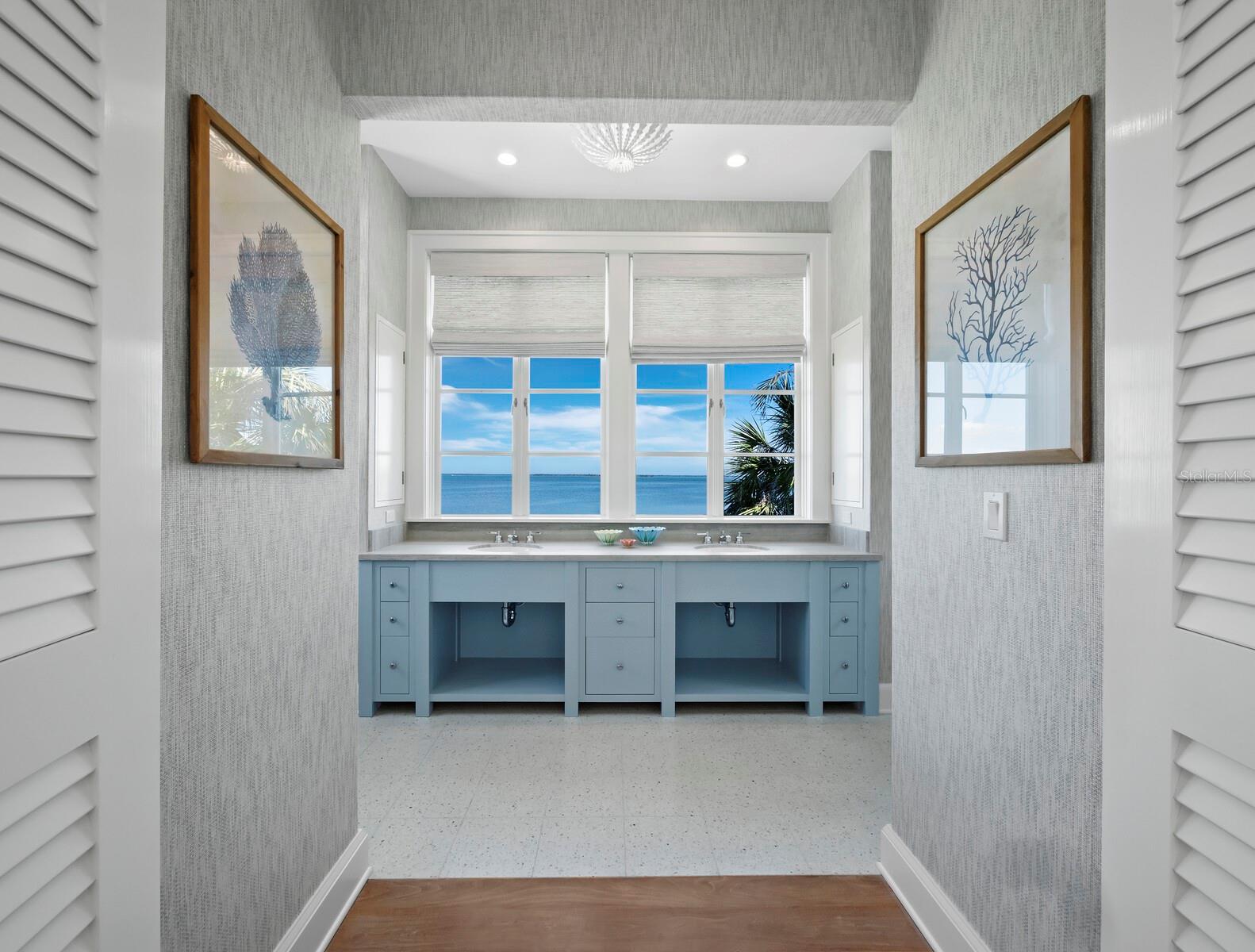 The home's spacious design creates true indoor-outdoor living with direct water views from every room and 9 sets of French doors flowing out to the rear loggia and patio from the nearly 3,000 sq ft first floor. Outside enjoy a swim in the pool, paddle boarding in the protected bay, a boat adventure or just sitting on the logia watching the osprey and white pelicans in this serene natural setting.
